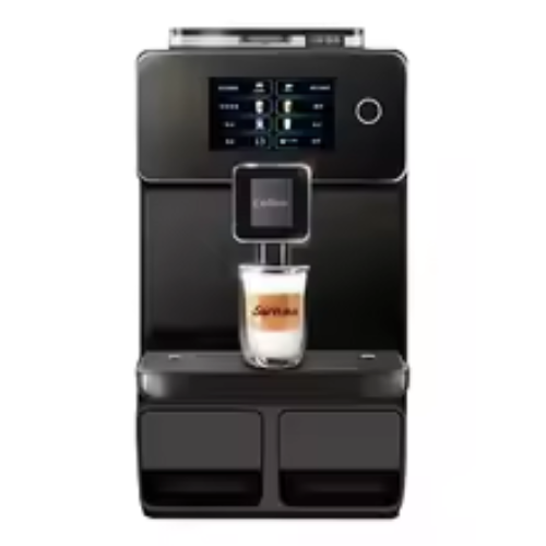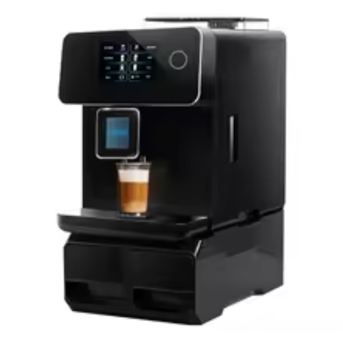 Modern fully automatic coffee machine with touch controls and built-in milk frother, designed to deliver rich, barista-style beverages at home or in the office.