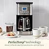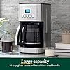 This drip coffee maker combines functionality with a sleek, contemporary design. It features a stainless-steel exterior with a digital control panel and several function buttons for easy operation. The clear glass carafe allows you to monitor the brewing level, while the black and silver color scheme gives it a clean, modern look suitable for any kitchen. Ideal for brewing multiple cups at once, it is designed for convenience and everyday use.