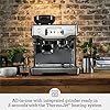 This high-performance espresso machine is designed for coffee lovers who want café-quality drinks at home. It features a sleek stainless-steel body, a built-in conical burr grinder on top, and a front control panel with selector buttons and a pressure gauge area. The machine includes a portafilter, a spacious drip tray, and a dedicated area for brewing espresso shots.
